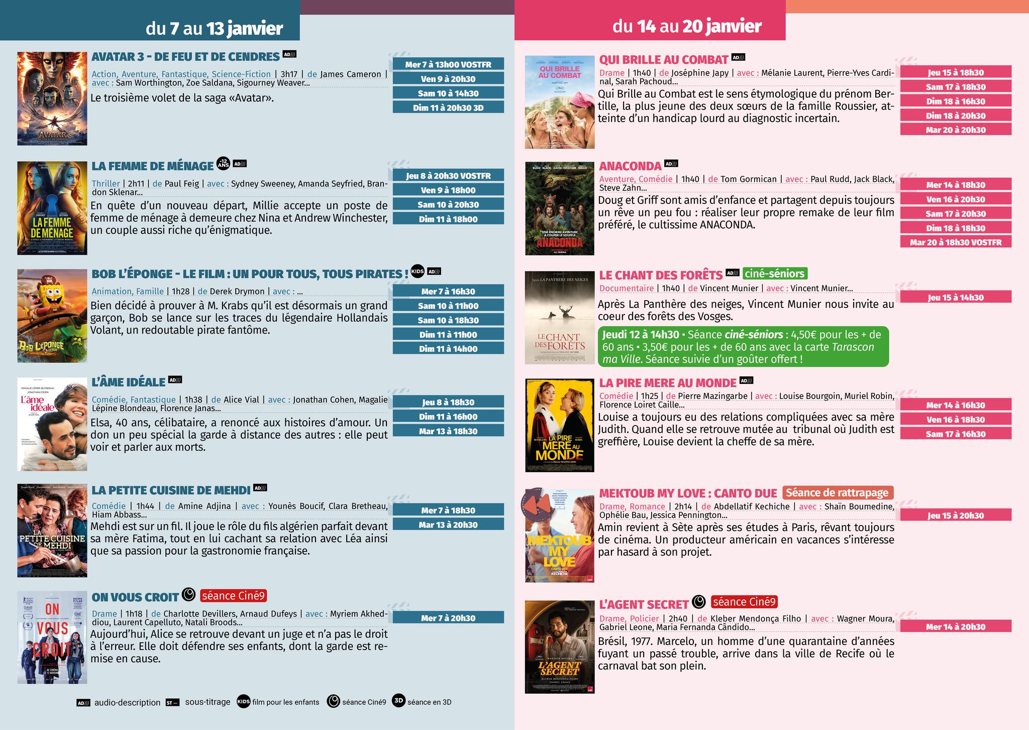 Programme à disposition dans le bâtiment ou sur le site de la mairie : www.mairie-tarascon.com/cinema
