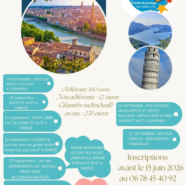 Voyage "en Italie" avec le comité de jumelage d'Ax-les-Thermes